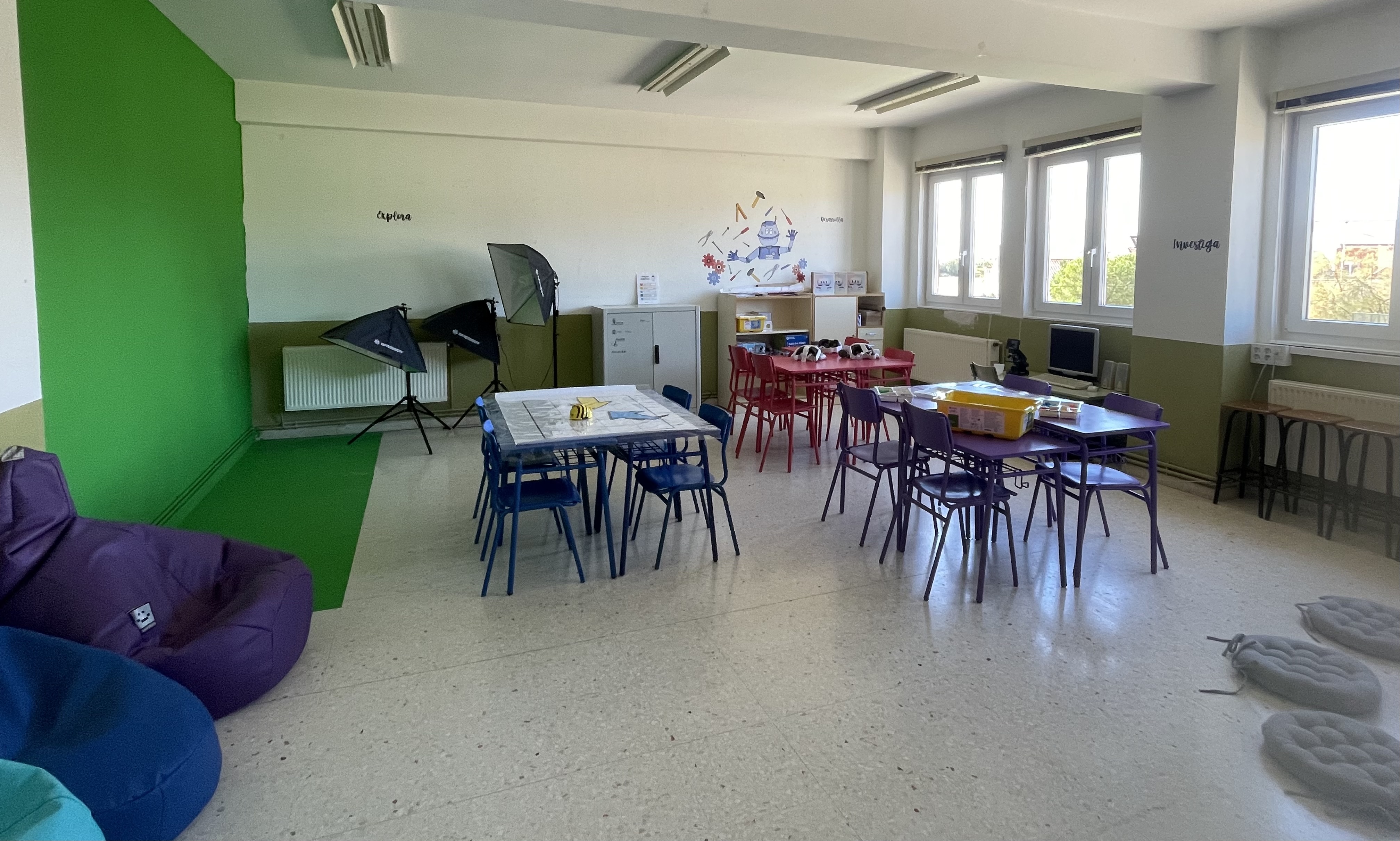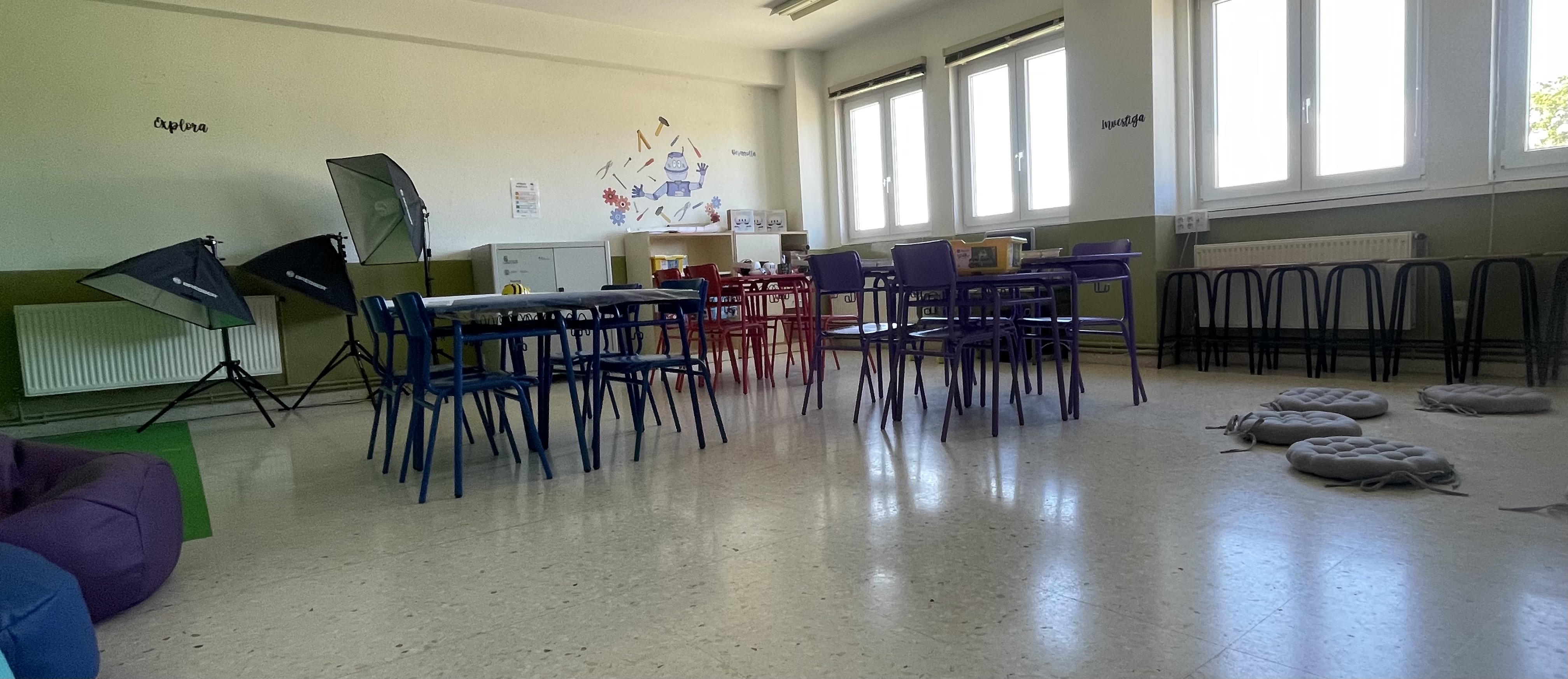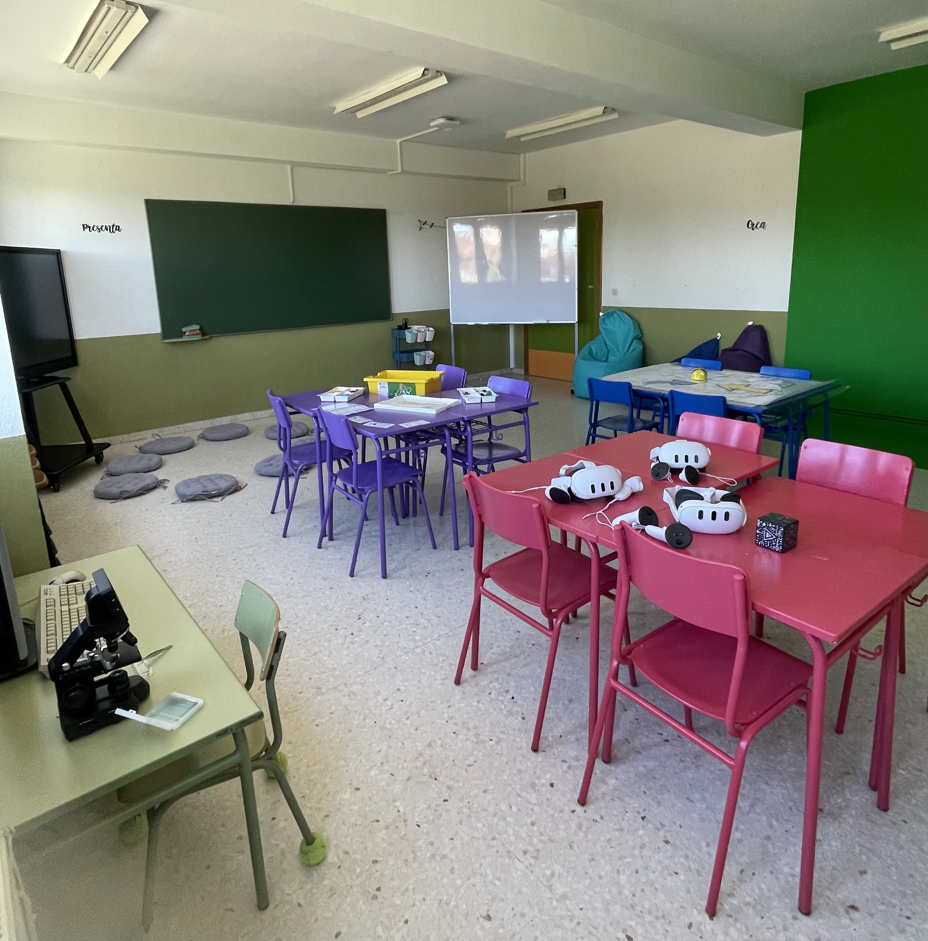 Este curso, y gracias al Proyecto de Innovación Educativa "Escuela Rural , una Escuela de Vida", ponemos en marcha la creación de nuestra “AULA DEL FUTURO”, espacio creado con la intención de transformar y mejorar el uso de la tecnología en la enseñanza y el aprendizaje, espacio transformado y dividido cromáticamente en varias zonas y dotado de una variedad de tecnologías, que pretende provocar un cambio metodológico para favorecer y estimular los procesos de enseñanza y aprendizaje en el aula promoviendo el uso de pedagogías activas.