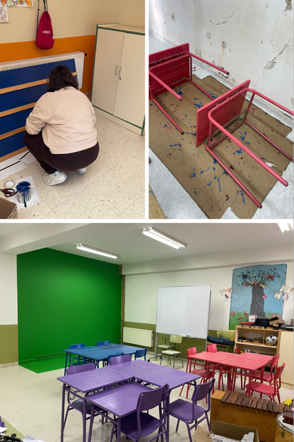 Para la transformación del mobiliario hemos llevando a cabo una restauración de mismo convirtiendo el aula en espacio de múltiple variedad cromática atractivo y motivador para nuestro alumnado con diferentes zonas en las que el alumnado pueda: